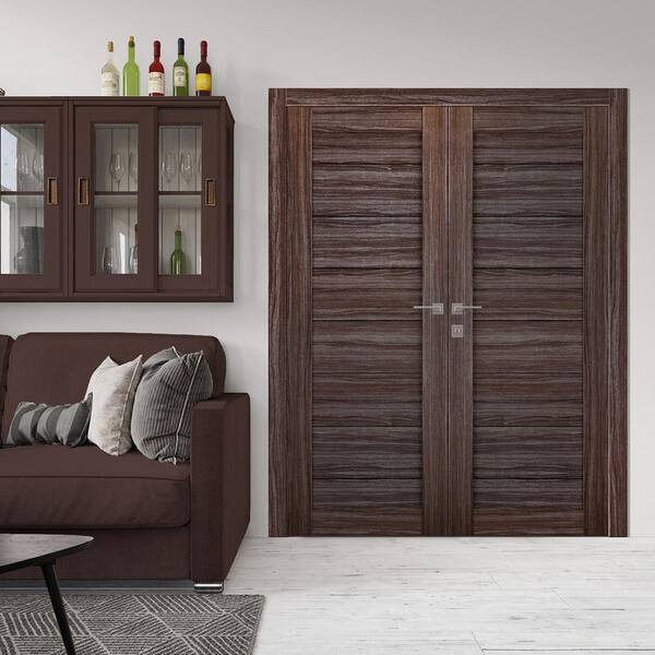 Ermi 60 in. x 84 in. Both Active Gray Oak Composite Wood Double Prehung Interior Door