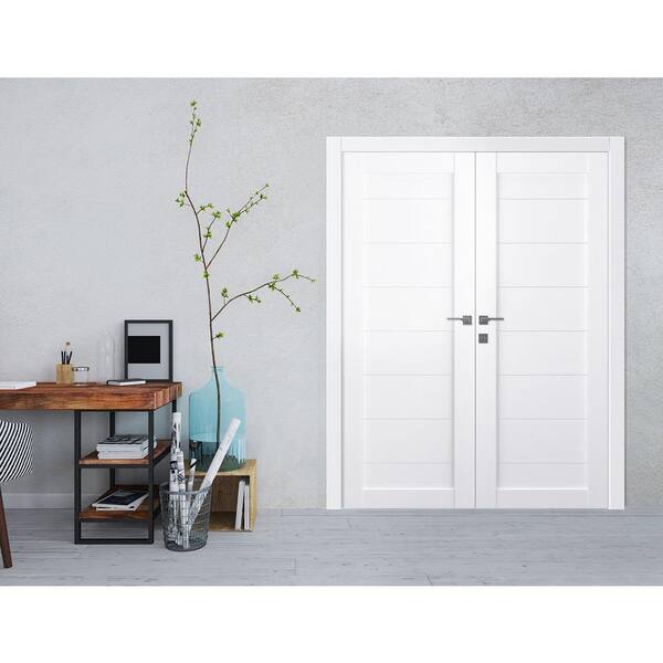 Ermi 72 in. x 84 in. Left Hand Active Bianco Noble Composite Wood Double Prehung Interior Door