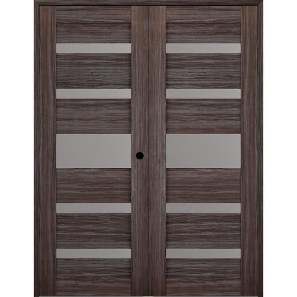 Gina 60 in. x 96 in. Left Hand Active 5-Lite Gray Oak Wood Composite Double Prehung Interior Door