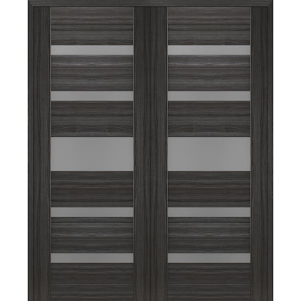 Gina 72 in. x 84 in. Solid Core Both Active 5-Lite Frosted Glass Gray Oak Wood Composite Double Prehung Interior Door