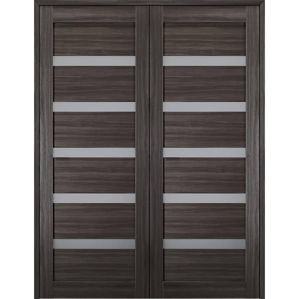 Leora 36 in.x 83.25 in. Both Active 6-Lite Frosted Glass Gray Oak Finished Wood Composite Double Prehung French Door