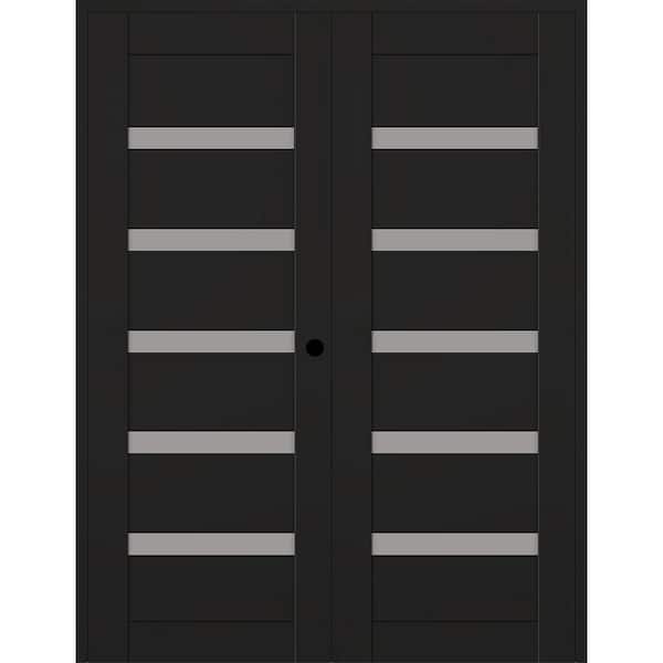 Leora 36 in. x 84 in. Left Active 6-Lite Frosted Glass Black Matte Composite Double Prehung Interior Door