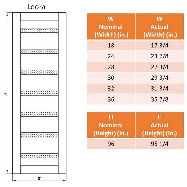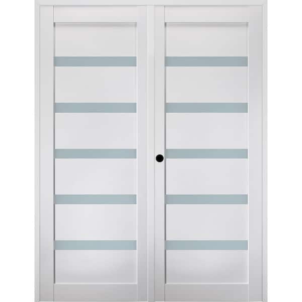 Leora 48"x 95.25" Right Hand Active 7-Lite Frosted Glass Bianco Noble Finished Wood Composite Double Prehung French Door
