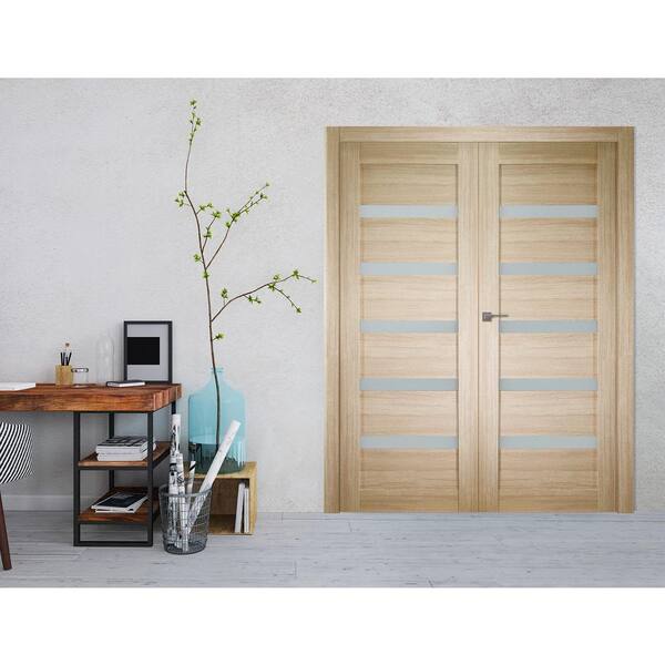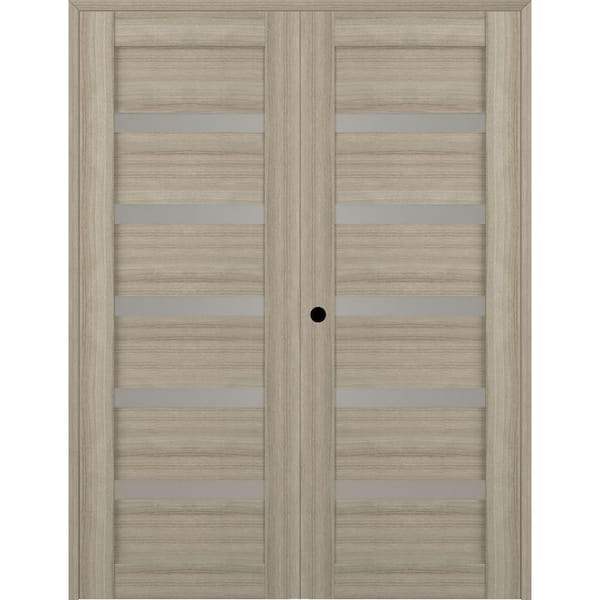 Leora 72 in. x 79.375 in. Right Hand Active 5Lite Frosted Glass Shambor Finished Wood Composite Double PrehungFrenchDoor