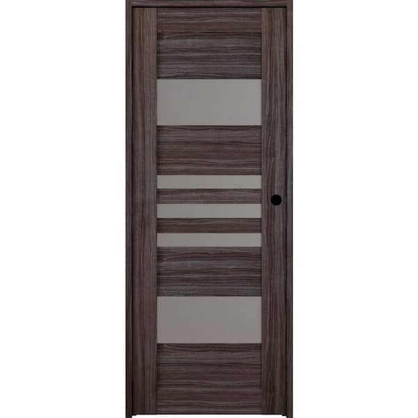 Leti 36 in. x 95.25 in. Left-Hand Frosted Glass Gray Oak Solid Core Wood Composite Single Prehung Interior Door
