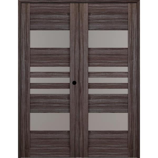 Leti 56 in. x 96 in. Left Hand Active 5-Lite Frosted Glass Gray Oak Wood Composite Double Prehung Interior Door