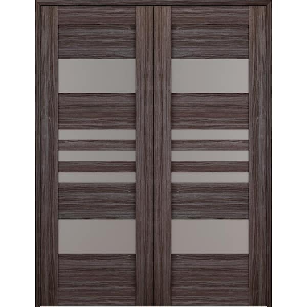 Leti 72 in. x 84 in. Both Active 5-Lite Frosted Glass Gray Oak Wood Composite Double Prehung Interior Door