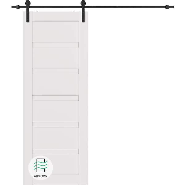 Louver 28 in. x 84 in. Snow White Wood Composite Sliding Barn Door with Hardware Kit