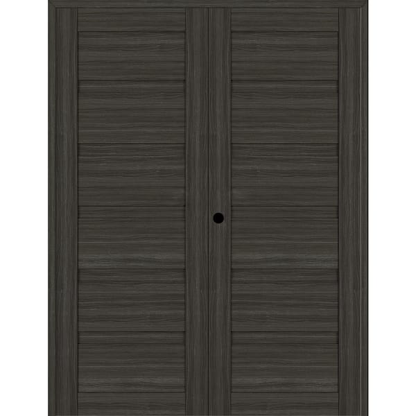 Louver 36 in. x 84 in. Right Hand Active Gray Oak Wood Composite Double Prehung Interior Door
