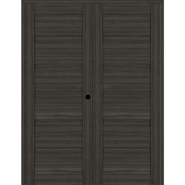 Louver 48 in. W. x 84 in. Left Hand Active Gray Oak Wood Composite Double Prehung Interior Door