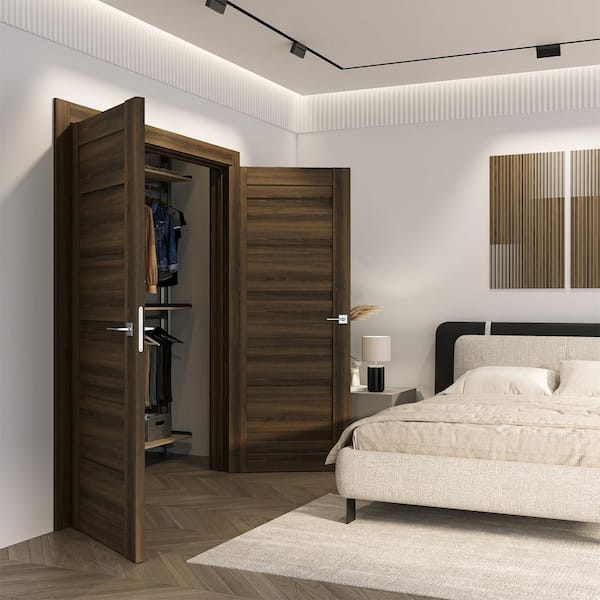 Louver 48 in. x 95.25 in. Left Active Pecan Nutwood Wood Composite Double Prehung Interior Door