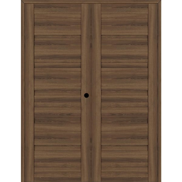 Louver 56 in. x 83.25 in. Left-Hand Active Pecan Nutwood Wood Composite Double Prehung Interior Door