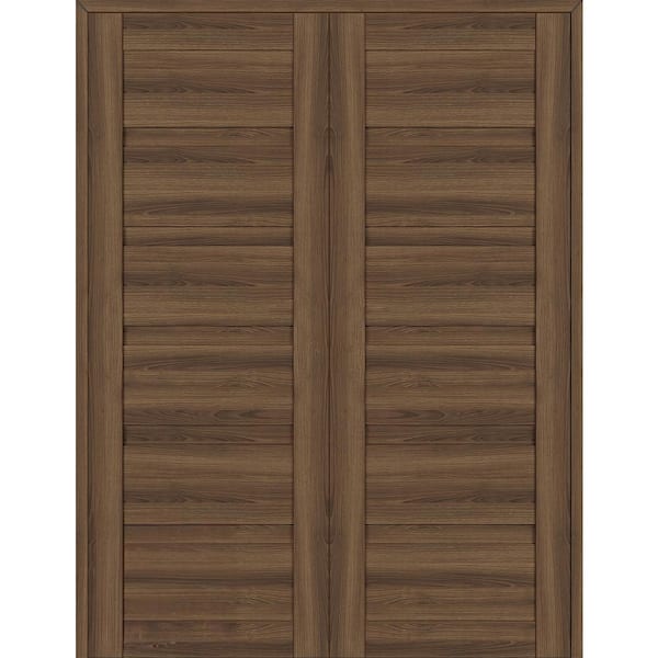 Louver 72 in. x 83.25 in. Both Active Pecan Nutwood Wood Composite Double Prehung Interior Door