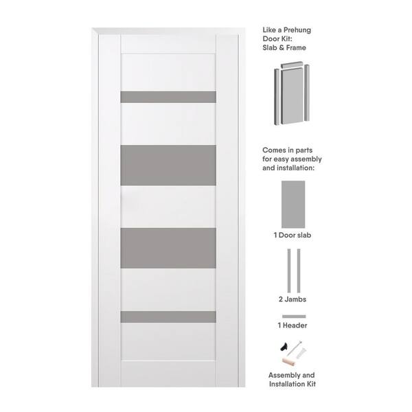 Mirella 28" x 84" Right Hand 5 Lite Frosted Glass Snow White Composite Wood Single Prehung Door