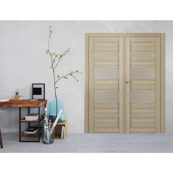 Mirella 36" x 80" Left Hand Active 4-Lite Frosted Glass Shambor Finished Wood Composite Double Prehung French Door