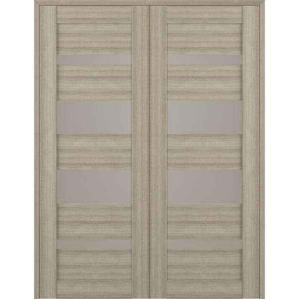 Mirella 60" x 84" Both Active 5-Lite Frosted Glass Shambor Finished Wood Composite Double Prehung French Door
