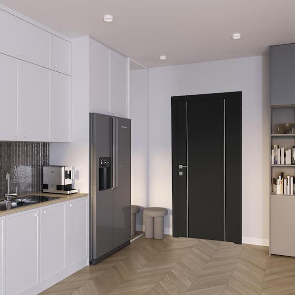 Optima 2U 18 in. x 80 in. No Bore Black Matte Solid Composite Core Wood Standard Interior Door Slab