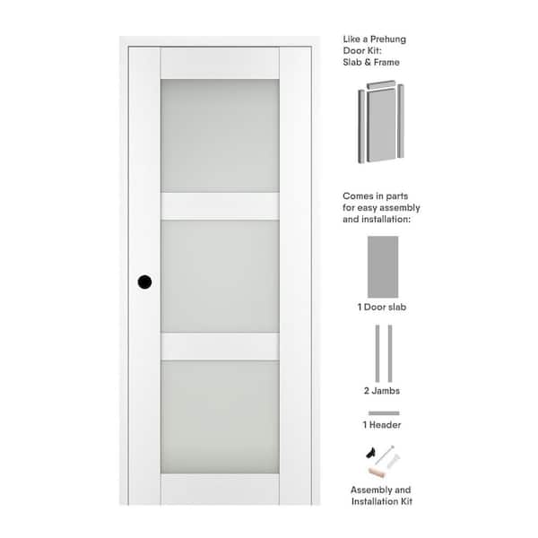 Paola 3-Lite 36 in. x 84 in. Right-hand Frosted Glass BiancoNoble Composite Solid Core Wood Single Prehung Interior Door