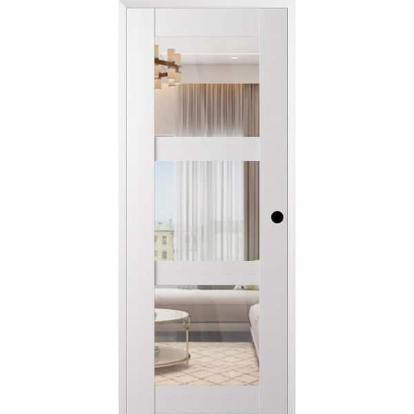 Paola 3 Lite DIY-Friendly 32 in. x 80 in. Left-Handed Clear Glass Bianco Noble Composite Single Prehung Interior Door