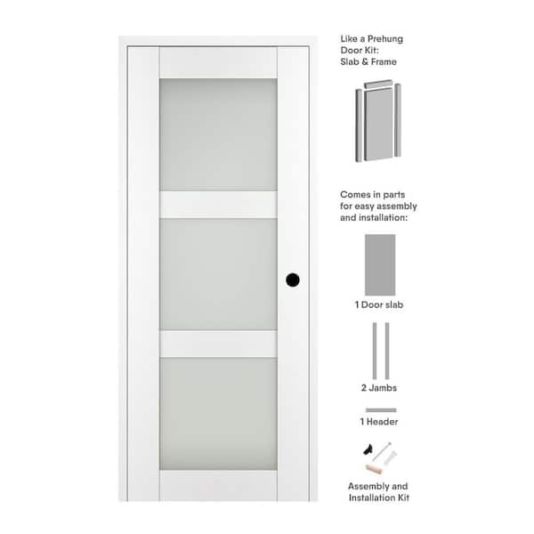 Paola 32 in. x 80 in. Left-Hand 3Lite Frosted Glass Bianco Noble Composite Solid Core Wood Single Prehung Interior Door