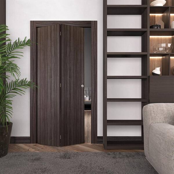 Paola 36 in. x 79.375 in. Solid Composite Core Gray Oak Finished Wood Bifold Door with Hardware