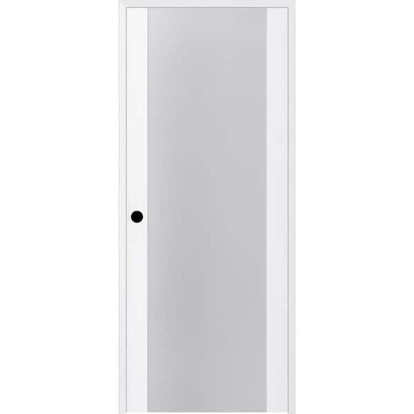 Paola 36 in. x 80 in. Right-Handed 1-Lite Frosted Glass Solid Core Bianco Noble Wood Single Prehung Interior Door