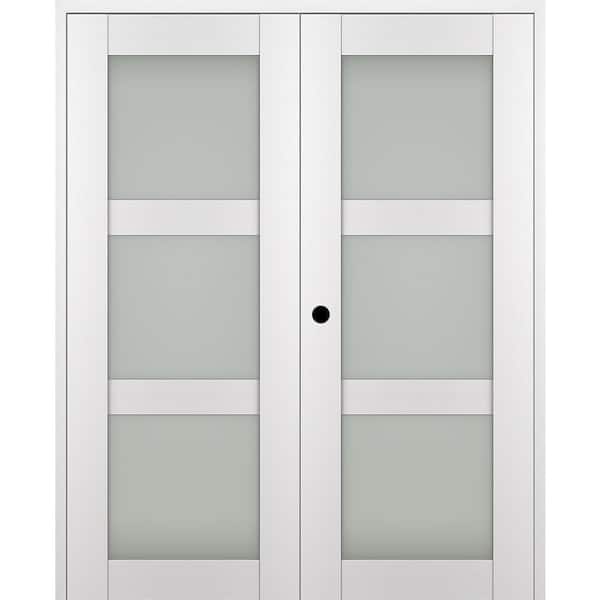 Paola 60 in. x 84 in. Right Hand Active 3-Lite Frosted Glass Bianco Noble Wood Composite Double Prehung French Door