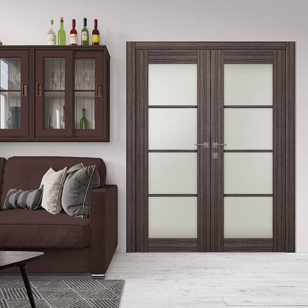 Paola 60 in. x 96 in. Left Hand Active 4-Lite Frosted Glass Gray Oak Wood Composite Double Prehung French Door