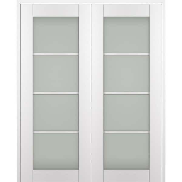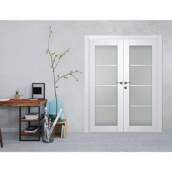 Paola 64 in. x 80 in. Both Active 4-Lite Frosted Glass Bianco Noble Wood Composite Double Prehung French Door