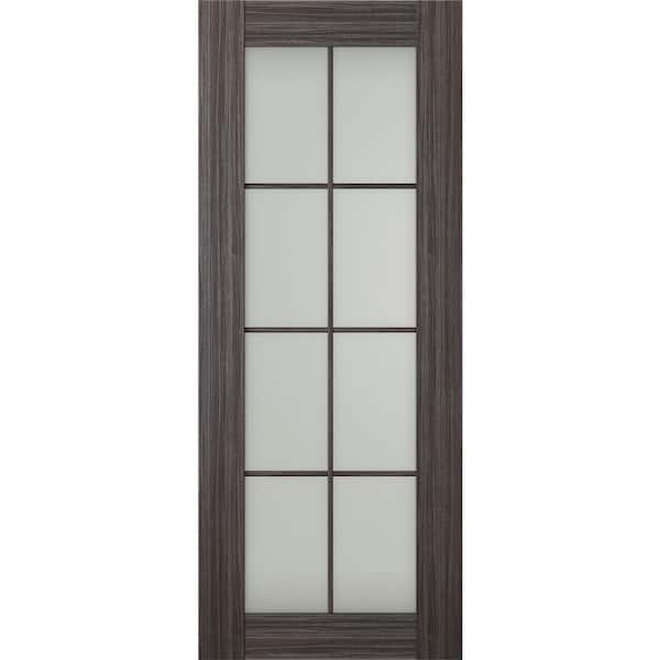 Paola 8 Lite 28 in. x 80 in. No Bore 8-Lite Frosted Glass Gray Oak Wood Composite Interior Door Slab