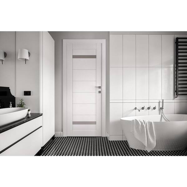 Perla 28 in. x 80 in. No Bore 2-Lite Frosted Glass Snow White Solid Composite Core Wood Composite Interior Door Slab