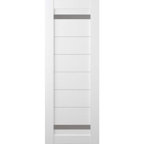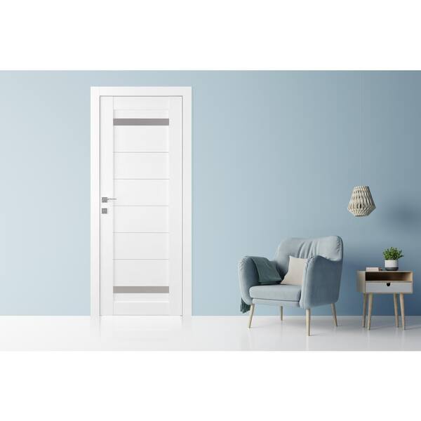 Perla 36 in. x 84 in. No Bore 2-Lite Frosted Glass Bianco Noble Solid Composite Core Wood Composite Interior Door Slab