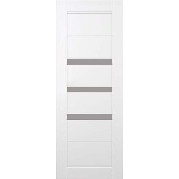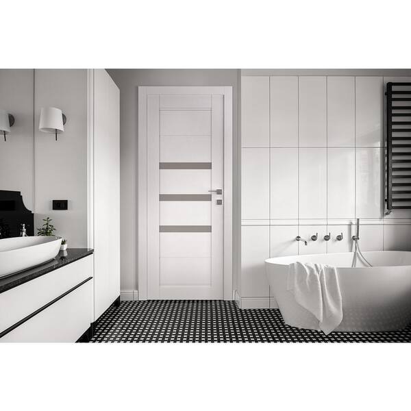 Rita 30 in. x 80 in. No Bore 3-Lite Frosted Glass Snow White Solid Wood Composite Interior Door Slab
