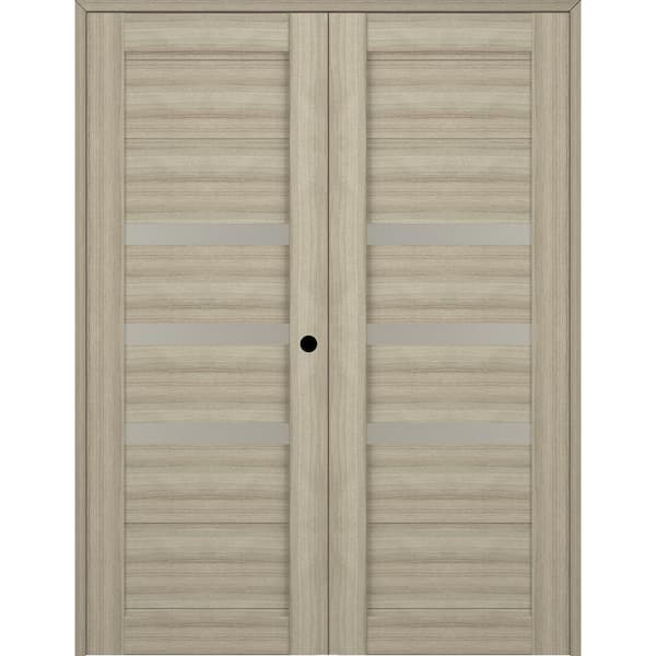Rita 56 in. x 80 in. Left Hand Active 3-Lite Frosted Glass Shambor Finished Wood Composite Double Prehung French Door