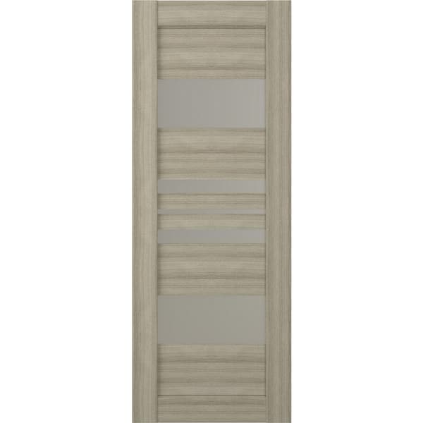 Romi 24 in. x 80 in. No Bore Solid Core 5-Lite Frosted Glass Shambor Finished Wood Composite Interior Door Slab