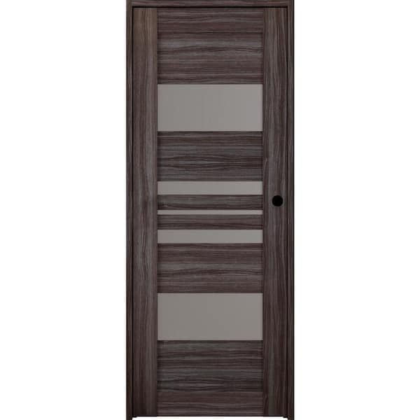 Romi 30 in. x 80 in. Gray Oak Left-Hand Solid Core 5-Lite Frosted Glass Wood Composite Single Prehung Interior Door