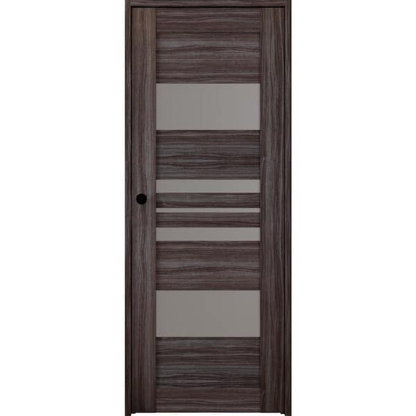 Romi 30" x 83.25" Right-Hand Frosted Glass Gray Oak Solid Core Wood Composite Single Prehung Interior Door