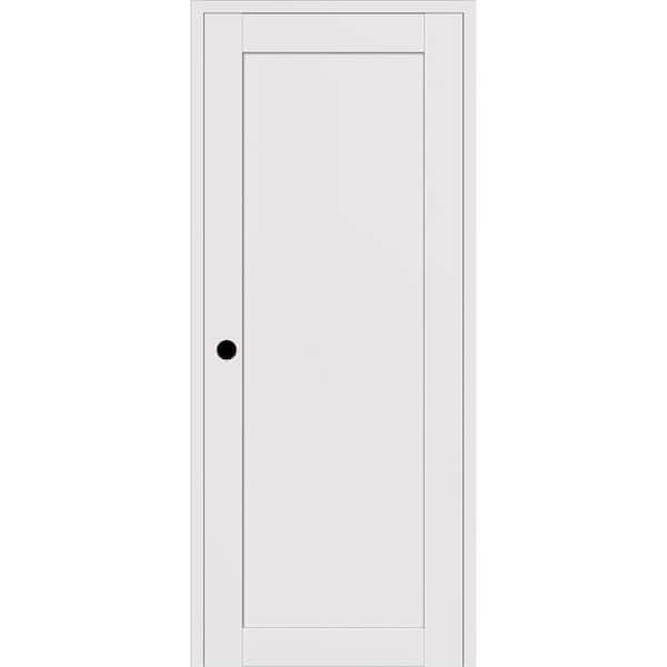 Shaker 1 Panel 36" x79,375" Right Hand Snow White Wood Single Prehung Interior Door with Concealed Hinges