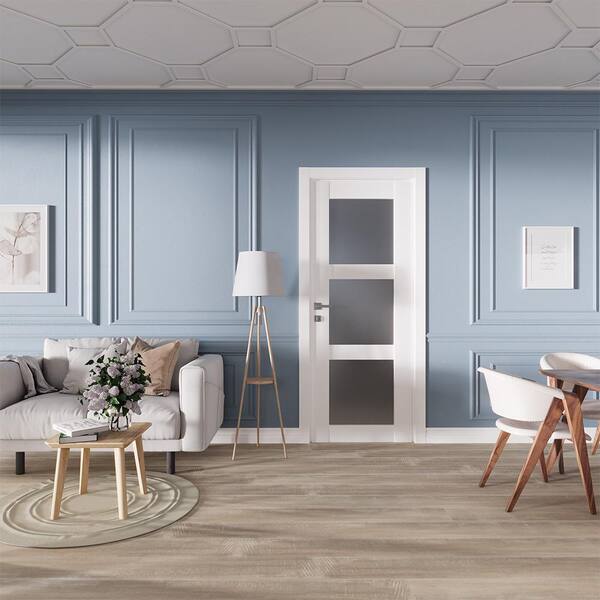 Smart Pro 3-Lite 30 in. x 80 in. No Bore Frosted Glass Polar White Composite Wood Interior Door Slab