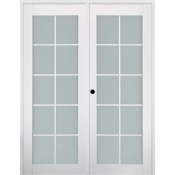 Smart Pro 56"x 84" RightHand Active 10-Lite Frosted Glass Polar White Finished Wood Composite Double Prehung French Door