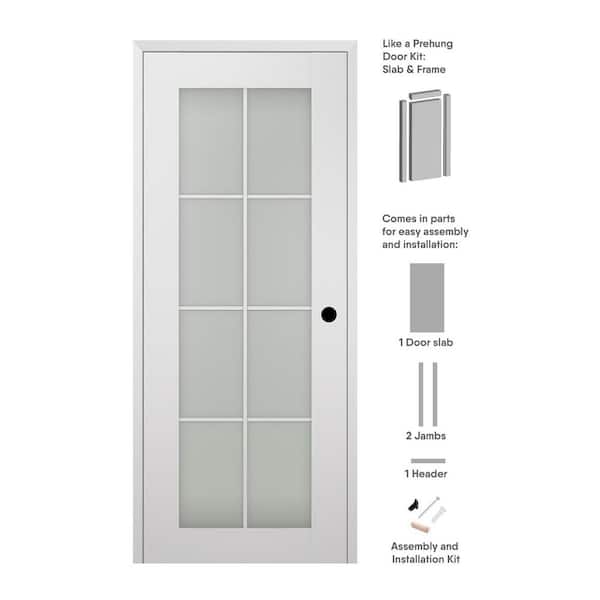 Smart Pro 8-Lite 30 in. x 80 in. Left-Hand Frosted Glass Polar White Composite Wood Single Prehung Interior Door
