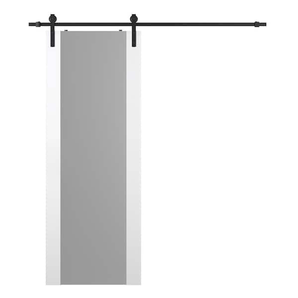 Smart Pro H3G 24 in. x 80 in. Full Lite Frosted Glass Polar White Wood Composite Sliding Barn Door with Hardware Kit