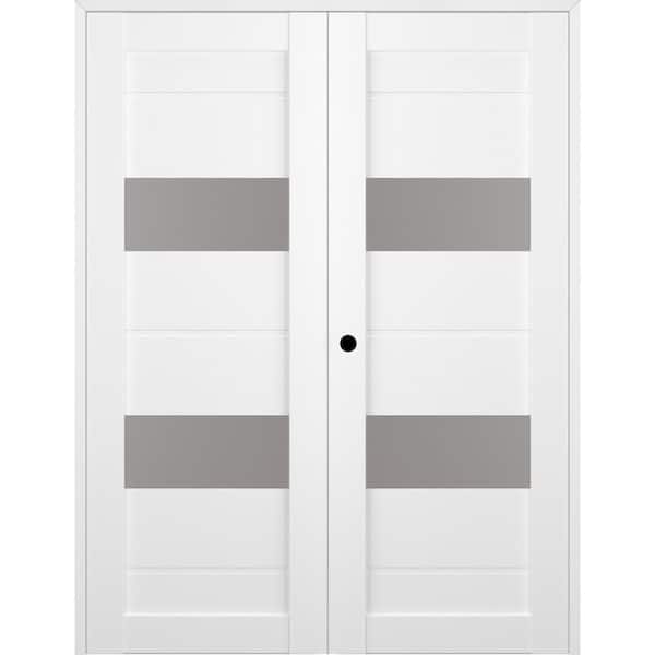 Vita 36 in. x 95.25 in. Right Hand Active 2-Lite Frosted Glass Bianco Noble Wood Composite Double Prehung French Door