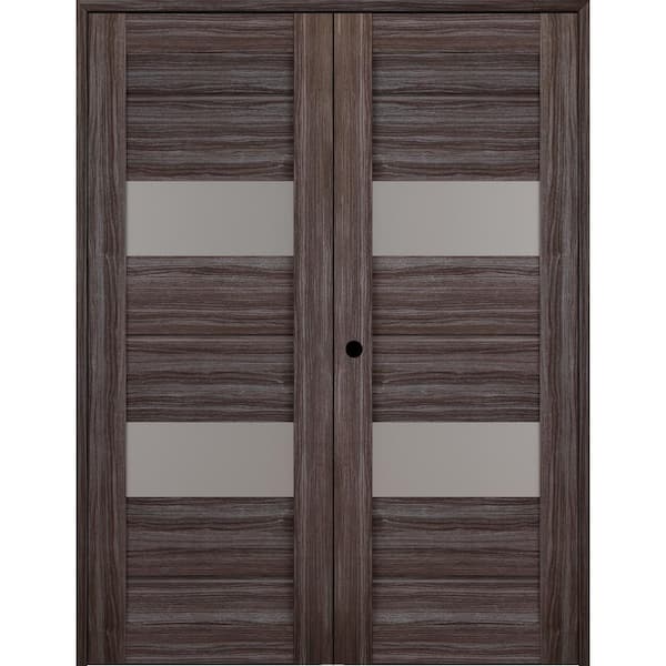 Vita 48 in. x 95.25 in. Right Hand Active 2-Lite Frosted Glass Gray Oak Wood Composite Double Prehung French Door