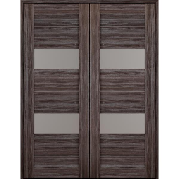 Vita 72 in. x 83.25 in. Both Active 2-Lite Frosted Glass Gray Oak Wood Composite Double Prehung French Door
