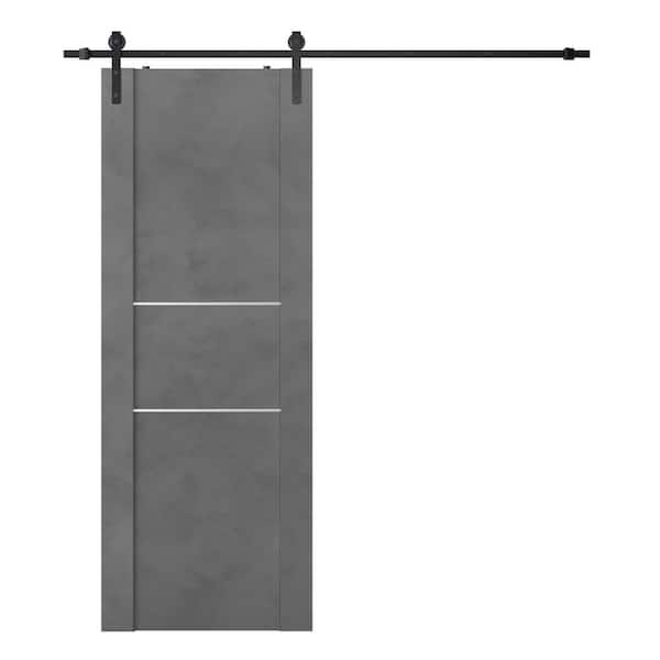 Vona 01 2H 36 in. x 80 in. Dark Urban Composite Core Wood Sliding Barn Door with Hardware Kit
