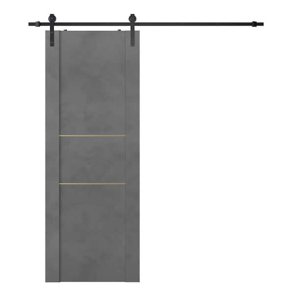 Vona 01 2H Gold 36 in. x 80 in. Dark Urban Composite Core Wood Sliding Barn Door with Hardware Kit