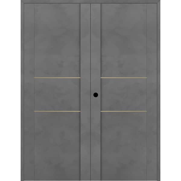 Vona 01 2H Gold 36 in. x 80 in. Right Hand Active Dark Urban Wood Composite Double Prehung Interior Door