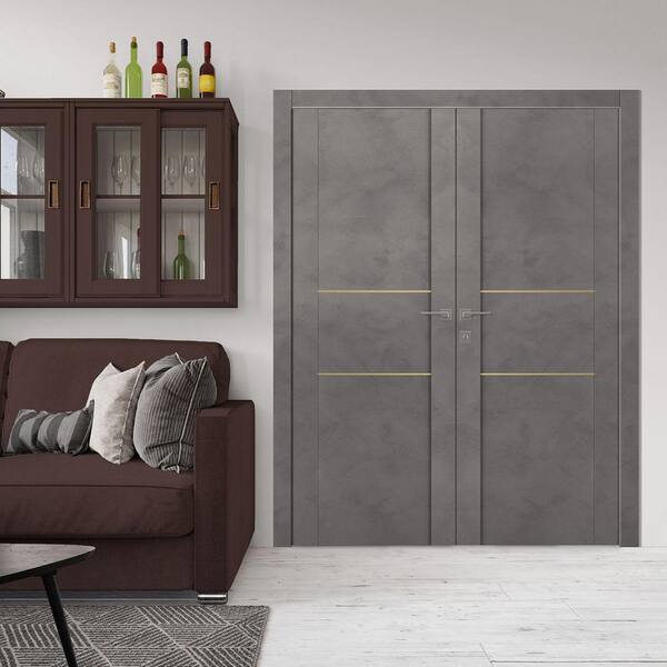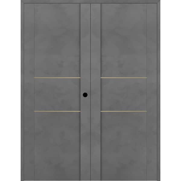 Vona 01 2H Gold 56 in. x 80 in. Left Hand Active Dark Urban Wood Composite Double Prehung Interior Door