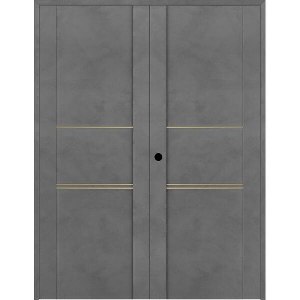 Vona 01 3H Gold 56 in. x 80 in. Right Hand Active Dark Urban Wood Composite Double Prehung Interior Door